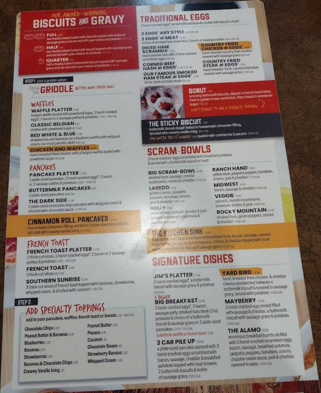Great food. Good prices. The Alamo burrito has big flavors. Not overly stuffed with potato filler. Biscuits are light and buttery. Gravy was a little thin but is seasoned well. If you’re in the area, it’s a good little breakfast spot. Service is phenomenal.
